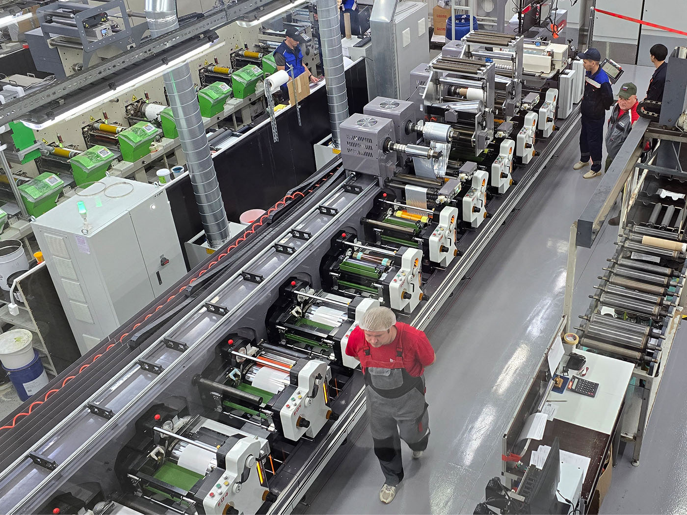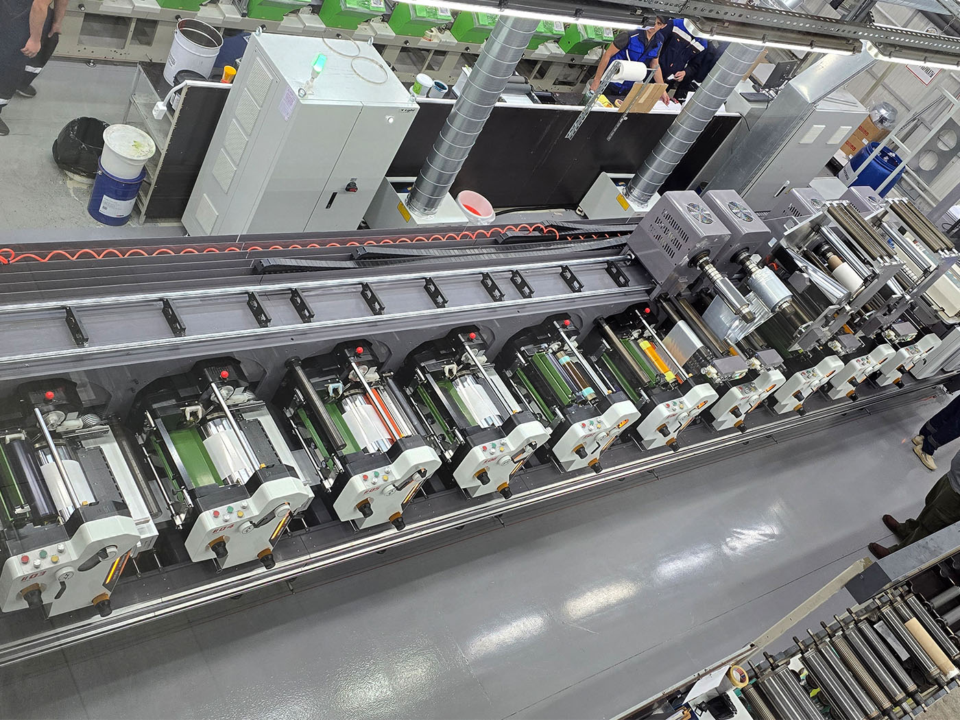 - Высокая производительность: 12 печатных секций с УФ-сушками позволяют осуществлять сложнейшую многокрасочную печать до 150 м/мин.
